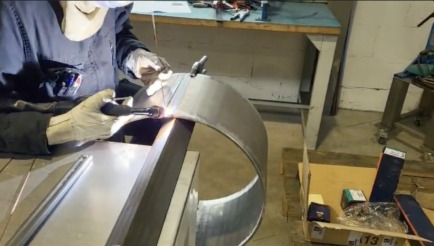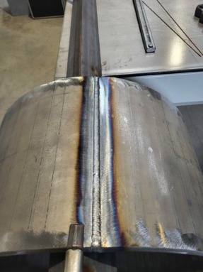 La partie métallerie a débuté par le croquage, une opération qui permet de former une virole à partir d’une tôle. Deux parties ont ensuite été préparées puis assemblées par soudure TIG pour former le cylindre de la cuve. La fabrication a aussi nécessité de la découpe laser, ainsi qu’un blanchiment de l’acier avant soudure, pour garantir la qualité de l’assemblage.